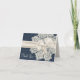 Vacker bröllop tack-kort gjord i grafik som ser ut som ett blått på blått denim-damaskmönster. Ytterligare grafik av en elfenbensfärgad spetsliknande doily pryder framsidans högra sida, och ett elfenbensfärgat sidenband och rosett sträcker sig över kortets mitt. Elfenbensfärgad text på framsidan lyder "Tack". Anpassa texten på framsidan och den blå texten på insidan efter dina behov. En underbar gest för att uttrycka din tacksamhet efter bröllopet.