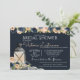 Blå och blommor och inbjudningskort för möhippan med vintage snöre boho, rustik möhippa i land elegant.