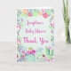 Den här babyduschen tackar dig för att du har ett kort med lanternor och vattenfärgssnittblommor och en mjuk löv. Anpassa den med en namn på framsidan och ett speciellt budskap inuti kortet. Detta kort ingår i en samling som innehåller en rad andra matchande babyduschprodukter. Besök insamlingssidorna i vår butik för att se fullt.