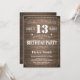 Lantlig 13th födelsedaginbjudan med lantlig Wood bakgrund. Retro vintage. Vuxen födelsedag. Male manar- eller kvinnafödelsedag. Ungar pojke eller flickadamen tonåring den tonårs- Bday inbjudan. 13th 15th 16th 18th 20th 21st 30th 40th 50th 60th 70th 80th 90:e 100. Några åldras. Behaga klickar "skräddarsy den" knäppas och använder vårt designverktyg för att ändra denna mall för mer ytterligare customization.