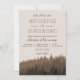 Lantlig bergbröllopinbjudan i brunt. Bakgrunden avbildar har en skog av gräset som träd på grunden skuggar in av brunt. Bakgrundsfärgen är en ljus solbränna. Berg avbildar är också inklusive på baksidaen av kortet. Du kan ändra texten, stilsorten och stilsortsfärgerna. Denna bröllopinbjudan matchar en samling i mitt lager.