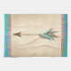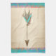 En lantlig pil med blommigt och turkos-fjäder som fletching mot en texturerad beige bakgrund, med stam- mönsterklippning för färgrikt neon.