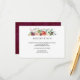 Denna eleganta botaniska mottagningskort till höljet är designad för att samordna med vår Country Bloom brölloppskollektion och har en ram av akvarellmålade burgunder och rosa blommor, med peonior och rosor ovanpå din önskade meddelandetext. Baksidan har en sammetslen burgunder bakgrund. Använd mallfälten för att anpassa med din mottagningsadress, tid och adressinformation. En modern och klassisk design för eleganta och chic trädgårdsbröllop eller landsbygdsfirande. Denna design är en del av en kollektion, besök vår butik för matchande artiklar. För anpassade förfrågningar, vänligen kontakta oss på citronelladesign@gmail.com