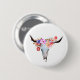 En kaskad av målade blommor dekorerar hornsna av en lantlig longhornskalle.