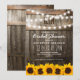 Välkommen till en fest full av rustik charm! Våra rustika bröllopsdusch-inbjudningar har en vacker ladugårdsmörk ekfatbakgrund, gnistrande strängljus, gyllene gula solrosor, din monogram och modern vit text. Med dessa inbjudningar kan du skapa en unik, chic och tidlös känsla för din speciella dag.