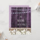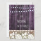 Lantlig bröllopsinbjudan mall med vintage spetsarbete och en gammal bondgård vägg i mjuka lila nyanser. Strängljus lägger till en mysig charm, vilket gör den perfekt för bröllop, brud shower, förlovningar, spara datum och årsdagar. Inkluderar framsida och baksida design av Alma Wad. Helt anpassningsbar för att passa din händelse.
