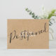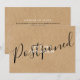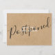 Detta eleganta lantliga datumändringskort för försenat bröllop kan anpassas med dina detaljer för förseningen. Baksidan har ytterligare information. Designad av Thisisnotme©