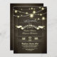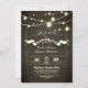 VÄSTERLANDSK LANTLIG REPETITION MIDDAGS INVITATIONER med vintage burlap bakgrund, gnistrande strängljus och stilfull typografi med en banderoll. Den bästa inbjudan för bruden och brudgummen som använder trädgårdsljus i deras lantliga stil bröllopsdekor.