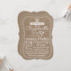 Sätt scenen för en kväll med countrymusik tema med vår rustika landliga burlap-bachelorette-fest inbjudan. Med en unik utskuren form och en realistisk tryckt burlap-struktur, fångar denna inbjudan perfekt den "Diamanter och Denim" eller "Nash Bash" känslan. Designen är accentuerad med en fantasifull diamant ring-grafik och elegant, handskriven typsnitt. Oavsett om ni är på väg till en lokal bar, en vingård eller en helg på stugan, berättar denna inbjudan för era gäster att förbereda sig för en fest som är lika jordnära som den är glamourös. 100% anpassningsbar: uppdatera enkelt namn, datum, plats och RSVP-information för att passa er specifika händelse.