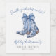 Denna bröllopsfest-etikett för vinflaskor har ett par eleganta blå cowboystövlar med en mjuk akvarellslinga i mitten, vilket ger en söt och rustik touch till din fest. Böjd över stövlarna står frasen "Something Blue Before I Do!" i ett graciöst skrivstil, vilket ger en rolig och charmig känsla till designen.