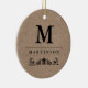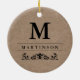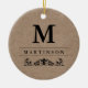 Denna klassikerprydnad presenterar fauxkraft en papper bakgrund, med ditt monogram och efternamn i svart och som dekorerar med en krusidull.