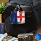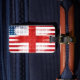 Kall bagagemärkre med en bekymrad kombination av amerikanska flaggan och flagga av England.