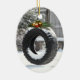 Den nostalgiska landjulen med ett däck svänger att hänga från en trädlimb i snö med helgdagdekorationer som tillfogas för de som minns att de enklare tiderna av julpyntjul semestrar prydnaden