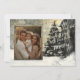 Det här personliga julkortet har en plats för ett varmt familjefoto i en ram med en rustik trärand. Bredvid bilden finns ett vackert dekorerat julgran täckt av snö, mot en snöig bakgrund. Meddelandet på kortet lyder "Varmaste önskningar för årstidens bästa och ljusaste glädjeämnen! Med kärlek från, ditt familjenamn skrivet med en elegant, flytande skrift. Designen blandar varma gyllene toner med vinterscenarier och skapar en mysig och festlig stämning, perfekt för att sprida julglädje.