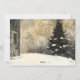 Lantlig julkort för familjen med snöig julgran
