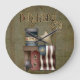 lantlig klocka med bild av träd bakgrund. träfat och söta äpplen. Perfekt för en höstmotiv eller hem ländlig dekoration