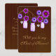 Varje bruds perfekta dag inkluderar hennes vänner. Vem litar du på för att hålla ett tal och utföra uppgifter som att hjälpa dig välja brudtärnornas klänningar så att din bröllopsplan går av stapeln utan problem? Oavsett om det är din ansvarsfulla syster, kusin, systerdotter eller din bästa vän, är denna "Vill du vara min brudtärna" - inbjudan ett roligt sätt att fråga. Anpassa kortet genom att ändra texten i de angivna fälten. Du kan ändra typsnitt, storlek och färg, papperssort och stil.