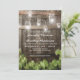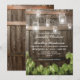 TUNNA MURAR JASMIN LYSANDE BRÖLLOPSKORT | Med en lantlig lada mörk ekfat bakgrund, gnistrande murare strängljus, året ni båda kom överens, vinstock löv modern bröllopstext. Hitta andra träbröllopskort på http://www.zazzle.com/special_stationery*