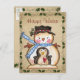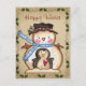 Bedårande snöman och pingvin vänskap julkort. Detta vykort i lanlig stil är ett roligt och prisvärt sätt att sprida julstämning.