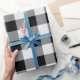 Detta slående in papper presenterar ett moderiktigt svartvitt lantligt buffelkontrollmönster. Underbar för använda, i pappershantverk och att slå in dina gåvor i stil!