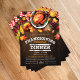 Fira värmen och gemenskapen under säsongen med denna Rustika Thanksgiving-middagsflygbladsmall, designad för att göra din restaurangs högtidsevent verkligt oförglömlig. Med en rik träbakgrund, livfulla höstlöv och en gyllene stekt kalkon i mitten, fångar denna design Thanksgiving-känslans väsen - tröst, smak och familj.