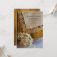 Bjud in gästerna att fortsätta firandet på morgonen efter vigseln med den charmiga ranchinspirerade Country Lace and Flowers Post Wedding Brunch-inbjudan. Denna avslappnade men ändå klassiska, rustikt eleganta efterbröllopsfrukost- eller lunchinbjudan har ett pittoreskt fotografi med torkad hortensiablomma, pärlhalsband, brudslöja och ett vintage, elfenbensfärgat linneserviettkant med brunt, väderbitet trä som bakgrund. Perfekt inspiration för en informell fest med lantlig eller laduliknande tema.