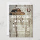 Inbjudan för landsbyggsbröllop för kall typografistil en lantlig med lantlig vänstersida för landladugård tränga någon upptill och en hästsko på höger. Bakgrunden är bedrövad wood tryckbakgrund för mörk ladugård.