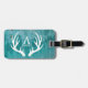 Moderiktig och lantlig grönt rostade märkren för metalltryckbagage med vithjorthorn på kronhjort och ditt personlignamn.