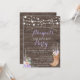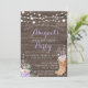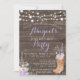 Elegant lantlig inbjudan med träliknande design, stövlar och blommor.