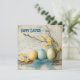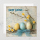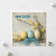 vintagepåskhälsningskortgod påskvattenfärggammaldagshandritningnarcisserblå ägggula äggretro korg