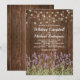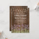 Upplev den råa skönheten och charmen hos en landsbygdbröllop med våra "Country Wood Wedding Invitations". Dessa unika inbjudningar har en rustik bakgrund av brädor från en lada, en strödd av livliga sommarlavendelblommor och gnistrande slingljus som ger liv åt scenen. Den eleganta bröllopsmallen är otroligt användarvänlig och ger en personlig och unik touch till din speciella dag. Nöj dig inte med det vanliga; våra inbjudningar är ett bevis på din kärlekshistorias unika charm.