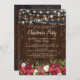 Den lantliga landjulen festar helgdagskort som presenterar en mörk wood trummabakgrund, festliga julblommor, stränger glimtljus, och festar den moderna julaftonen mallen som är lätt att personifiera.