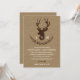 Denna landchic, brunt och vitbröllopinbjudan presenterar en unik brölloplogotyp med en brun hjort med horn på kronhjort, monogrammed initialer av bruden och brudgummen, nätt lagrar och en calligraphyet-tecken. Den lantliga designen inkluderar också en utskrivaven kraft papper bakgrund.
