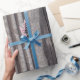 Lantligt ridit ut grå färgträ postar med korn och knyter themed slående in papper för land.