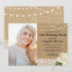 Lantlig elegant födelsedagsfestinbjudan. Tillfoga enkelt ditt foto & ändra texten för att passa ditt party. Dra tillbaka det inklusive trycket. Se att matcha objekt i min rosa Burlapsnöresamling.