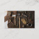 Denna visitkort presenterar en fotografera av lantligt verktyg på en träyta.