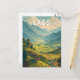 Laos Illustration Travel Art Vintage Vykort