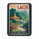 Laos retro vector travel design. From the UNESCO city of Luang Prabang and the spiritual charm of Vientiane to the natural beauty of Kuang Si Falls and the Plain of Jars, Laos offers an authentic blend of nature, history, and tranquility.