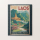 Laos retro vector travel design. From the UNESCO city of Luang Prabang and the spiritual charm of Vientiane to the natural beauty of Kuang Si Falls and the Plain of Jars, Laos offers an authentic blend of nature, history, and tranquility.
