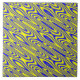 Den här fantastisk-plattan har en snabbt blå och gult abstrakt mönster. Om du tittar noga på det ser det ut som om det är flytta.