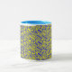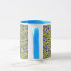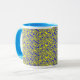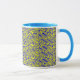 Mugg har en mycket blå och gult abstrakt mönster. Om du tittar noga på det ser det ut som om det är flytta. Utformningen visas på ett blått och vitt ringblad stil-kaffe mugg, men finns också på många fler stilar och färg i muggar, inklusive resemugg och vackert frostat muggar.