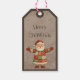 Lägg till en mysig, traditionell touch på dina julklappar med denna rustika julklappsetikett, med en brun textildesign inspirerad av klassisk juteväv. Det varma, naturliga utseendet är parat med en charmig lappverksstil-illustration av Tomte i traditionella julfärgerna rött, grönt och vitt, vilket skapar en tidlös festlig estetik.