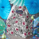 Den här utformningen har ett mönster som består av rosa läppar och abstrakt svart och vitt mönster.