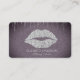Makeupkonstnären, hårstylisten, cosmetologists, skönhetsalonger och mer älskar denna moderna och rika silverglitterläppar med en purpurfärgad bakgrundsvisitkortdesign. Notera: Denna är en grafikreproduktion och innehåller inget smutsigt glitter.