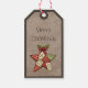 Lägg till en mysig, traditionell touch på dina julklappar med denna rustika julklappsetikett, med en brun texturerad design inspirerad av klassisk juteväv. Det varma, naturliga utseendet är parat med en charmig lapptäcksstil-sydd stjärnprydnad i traditionella julfärger röd, grön och vit, vilket skapar en tidlös festlig estetik.