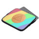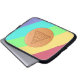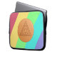 En färglös laptop sleeve med viltdalgona candy många triangel, på regnbågens bakgrund