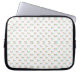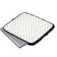 Laptop sleeve with a minimalist design featuring diagonal stripes in green, red, and blue on a white background. A laptop is partially visible, tucked inside.