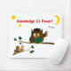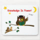 Den kloka uggla undervisar Einsteins formel och studenter lyssnar på föreläsningen. "Knowledge Is Power" är ett citat från en engelsk filosof Francis Bacon. Unika gåvor för skolgång, studenten, skolarrangemang och andra specialtillfällen!
