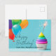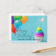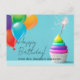 Önska glad födelsedag till dina elever med detta personliga vykort. Födelsedagskaka med ballonger och script och modern typsnitt. Tomt baksida vykort för att skriva ett meddelande.