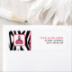 En returadressetikett för lärare med en illustration av Rosa Schoolhouse-logotypen lämnat över zebra tryck med rosa trim. Anpassa med ditt namn och adress vid högerna.